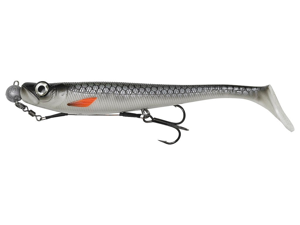 This full-body soft-plastic swimbait delivers a tail-thumping action and a side-to-side roll or shimmy that entices big fish to strike. Super-soft, yet durable. Rigged with Mustad jig head. Ready to fish!
