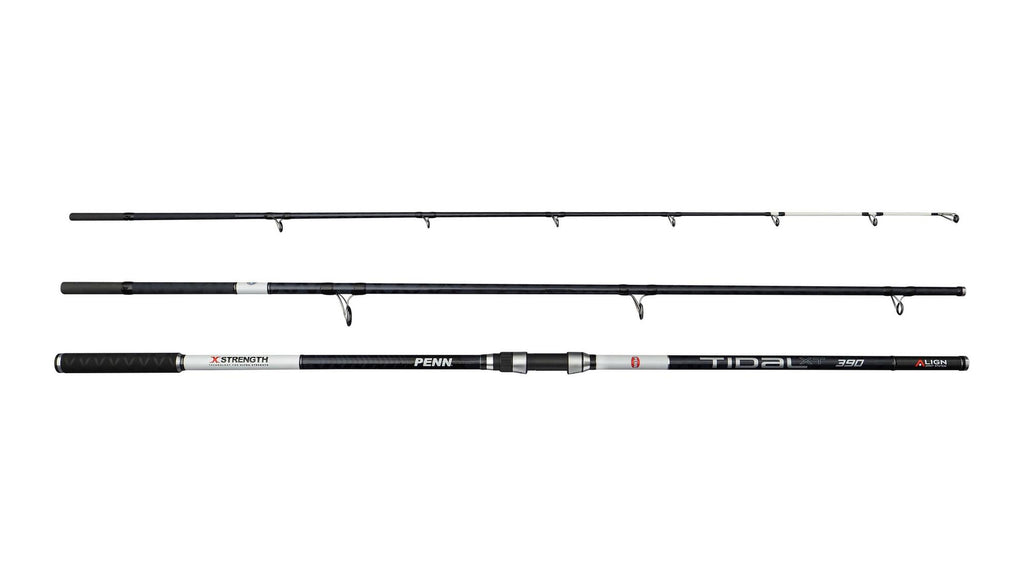 The PENN® Tidal XT Beach Caster is part of the new and exclusive Tidal Surfcasting Concept in PENN. The Tidal XT Beach Casters have been especially designed to be used with either a fixed spool reel or multiplier and are equipped with the new saltwater proof Fuji Alconite deep pressed frame guides. All blanks are built with a mixture of high modulus 36/40T carbon to ensure a lightweight, responsive and very slim blank. Next to that, the special Carbon X-Wrap technology adds to the strength of the and decreases twisting, thereby improving casting accuracy and control. The strong glow in the dark paint makes it also easy to see bites during low light conditions and next to that, these are all equipped with a special X-Shrink casting grip to give maximum control during your cast.