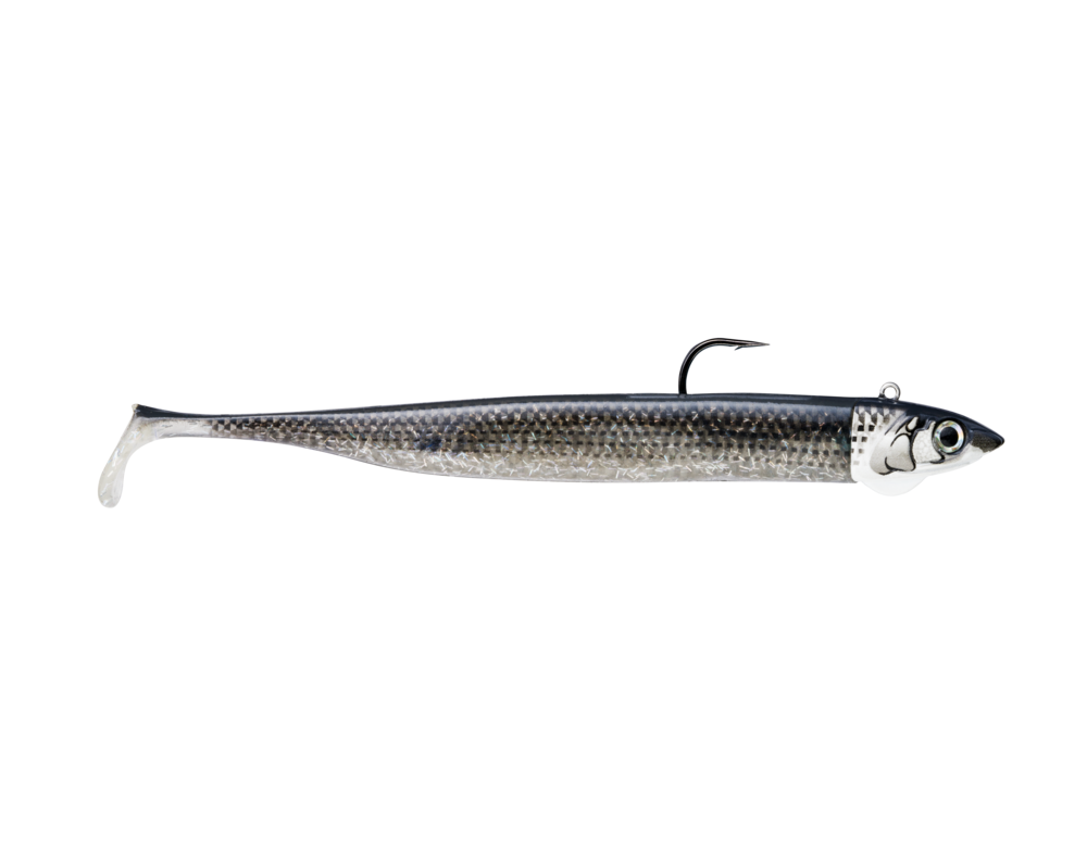 Built to imitate a prominent saltwater prey, Biscay Sandeel features a long, slender body and a perfectly matched head with a fixed hook. An additional chin eyelet gives the option of adding an assist hook or blade. This weighted head & body combination allows you to cast further in windy coastal conditions, and fish faster in rough water or when an aggressive presentation is needed. The subtle paddle tail kicks with a life-like action and incredible vibration, even at slow speeds. Both body sizes are available in two options; lighter head for cast and retrieve techniques and a heavier head option designed for vertical jigging even in strong currents. Every Biscay Sandeel is extremely visually detailed with each body perfectly color matched to its own jig head. Rigged with a heavy duty VMC® hook.